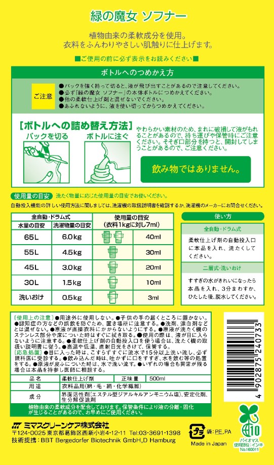 緑の魔女柔軟仕上げ剤 ソフナー詰め替え用 500ml